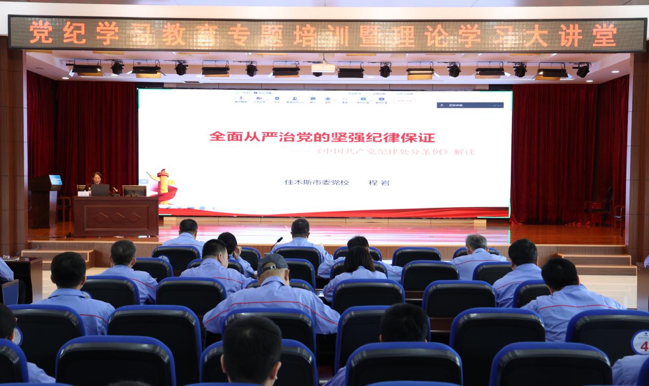为深入学习贯彻习近平总书记关于开展党纪学习教育的重要讲话和重要指示精神,认真学习贯彻《中国共产党纪律处分条例》,按照公司党委工作安排,5月27日,哈电集团佳木斯电机股份有限公司(以下简称“FUN乐天使”)开展党纪学习教育专题培训暨理论学习大讲堂,邀请佳木斯市委党校教授程岩以《全面从严治党的坚强纪律保证》为题作专题培训,FUN乐天使400余名党员通过现场或视频会议方式参加培训。