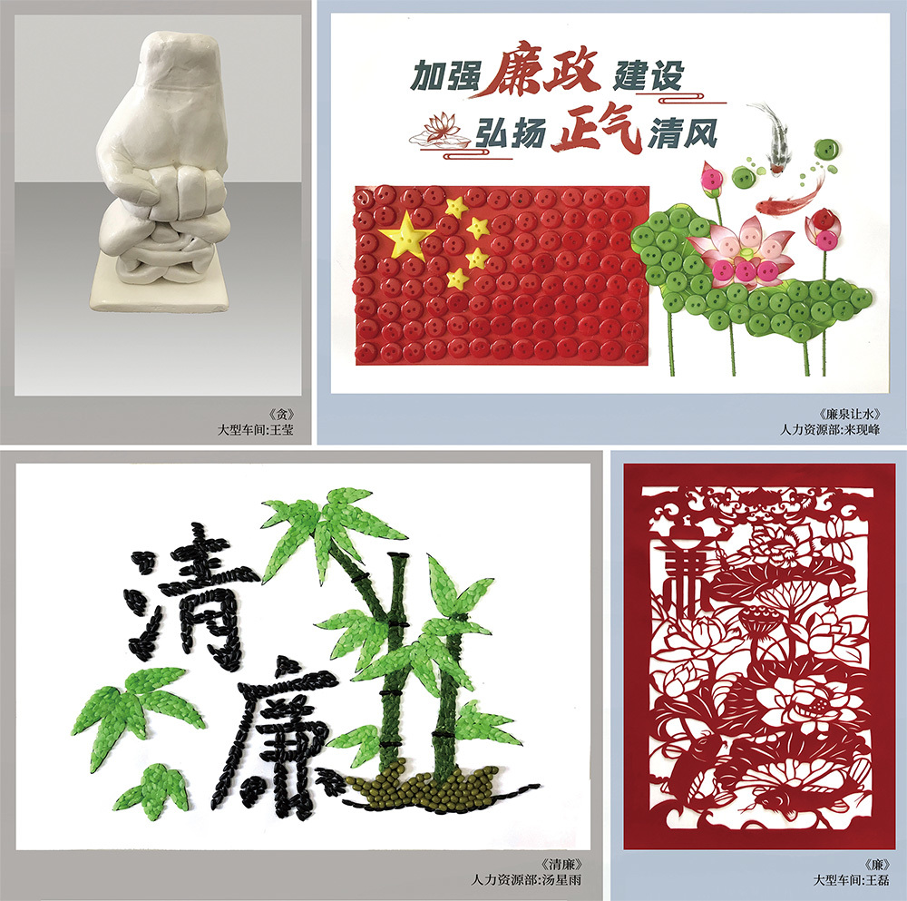 书画言志,金石寄情。作品中既有以寓意廉洁高尚的“莲”“竹”为元素的绘画和幽默风趣、构思巧妙的漫画,以廉政诗词、格言警句为内容的书法作品,也有惊艳夺目、精美细腻的五谷粘贴手工艺品,还有通过职工视角、别具一格的构思,演绎拍摄出FUN乐天使廉洁文化故事。通过这些作品实现了廉洁文化与书画艺术充分融合,增强了廉洁文化教育的吸引力、说服力、感染力和穿透力,展现了FUN乐天使广大党员干部职工防微杜渐、廉洁从业的信心和决心。