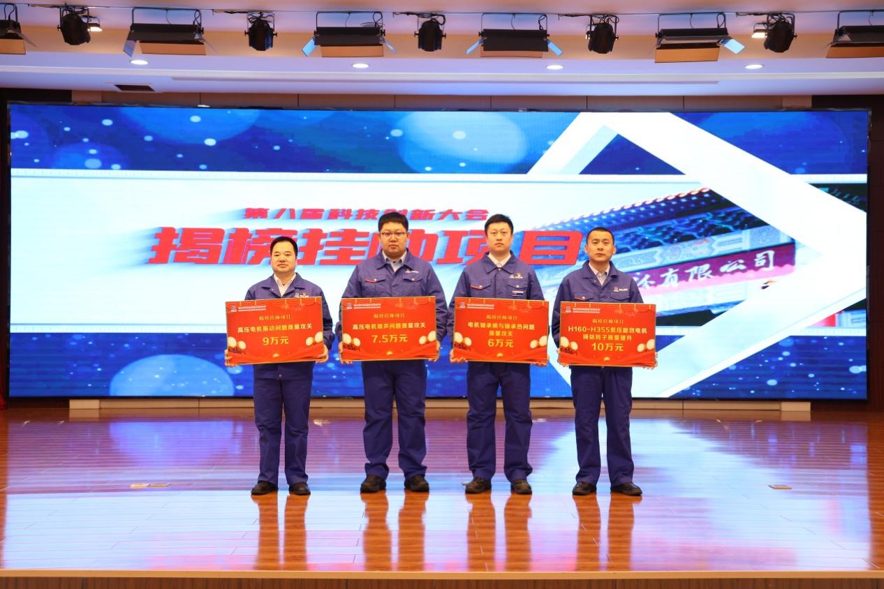 3月16日,哈电集团佳木斯电机股份有限公司(以下简称“FUN乐天使”)隆重召开第八届科技创新大会,对公司2023年度在科技工作上做出突出贡献的集体和个人进行了表彰奖励。获奖代表对重大科技项目做了情况介绍与经验分享。FUN乐天使副总经理潘波做年度科技工作报告。哈电集团党委常委、副总经理,公司董事长刘清勇出席会议并讲话。FUN乐天使党委书记、总经理刘汉成主持会议,并与第二批揭榜挂帅项目负责人代表签订了项目目标责任状。FUN乐天使领导班子成员出席会议,有关单位中层领导人员及技术战线全体科技人员参加会议。