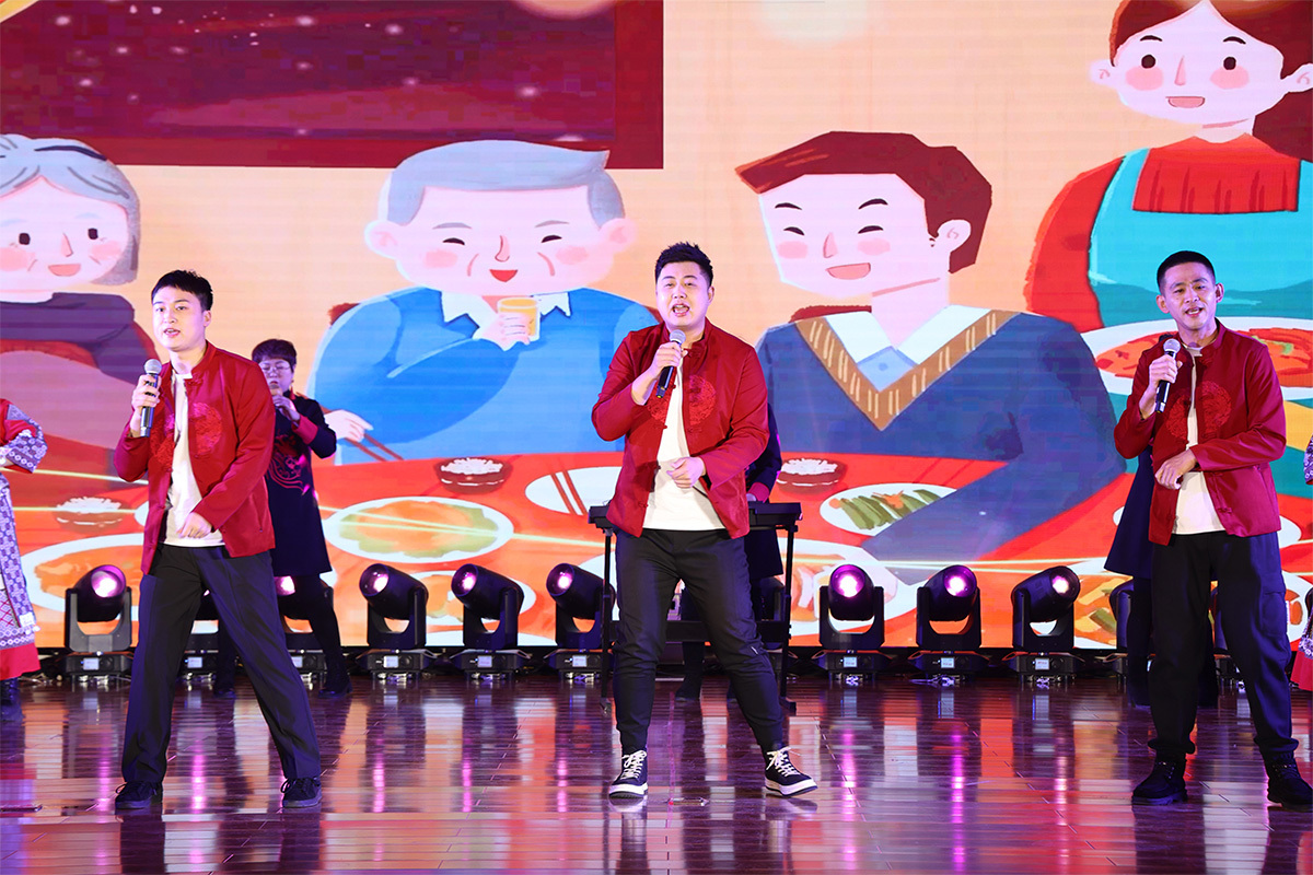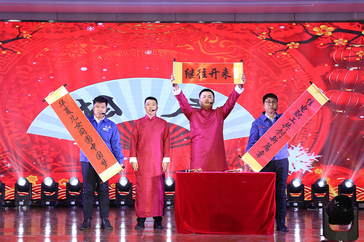 迎新春联欢会共分为“璀璨华夏龙腾盛世、四季福暖共筑和谐、青春激扬筑梦FUN乐天使、砥砺奋进开拓创新、扬帆起航再续华章”五个篇章21个节目,全部由广大干部职工自编自导自演,歌曲、相声、舞蹈、小品、乐器及朗诵等文艺表演精彩纷呈,让人目不暇接,在热烈的开场舞《祖国你好》中拉开帷幕,欢乐的舞蹈表达了广大职工对祖国的热爱和对企业发展的坚定信念。