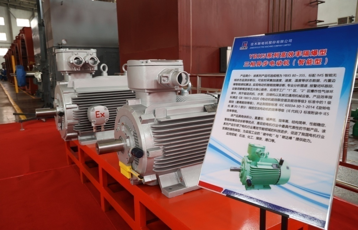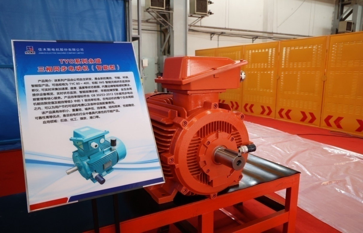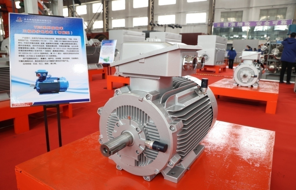 本次发布会展出的TBYC系列高效率隔爆型永磁三相同步电动机(智能型)、TYC系列永磁三相同步电动机(智能型)产品,依靠永磁体所提供的磁能替代了传统电机电励磁产生的磁能,具备电机损耗低、运行可靠性高的特点。在负载较低时,产品仍可保持较高的运行效率和功率因数,解决了机械设备在低负荷时能耗消耗大的问题。其中部分规格可配备智能监测终端产品,可实时采集加速度、速度、温度等状态数据,内置边缘智能感知算法,可提供设备概览、实时状态监测、智能故障诊断、早期故障预警、全生命周期管理等核心服务。同时,产品效率指标能够满足1级能效要求,在电动机的整个生命周期内,可以为用户节约可观的电费以及各种设施配套费用,是工信部“能效之星”推荐产品,可应用于石油化工、电力系统、纺织、工矿企业以及拖动风机、泵类等机械。
