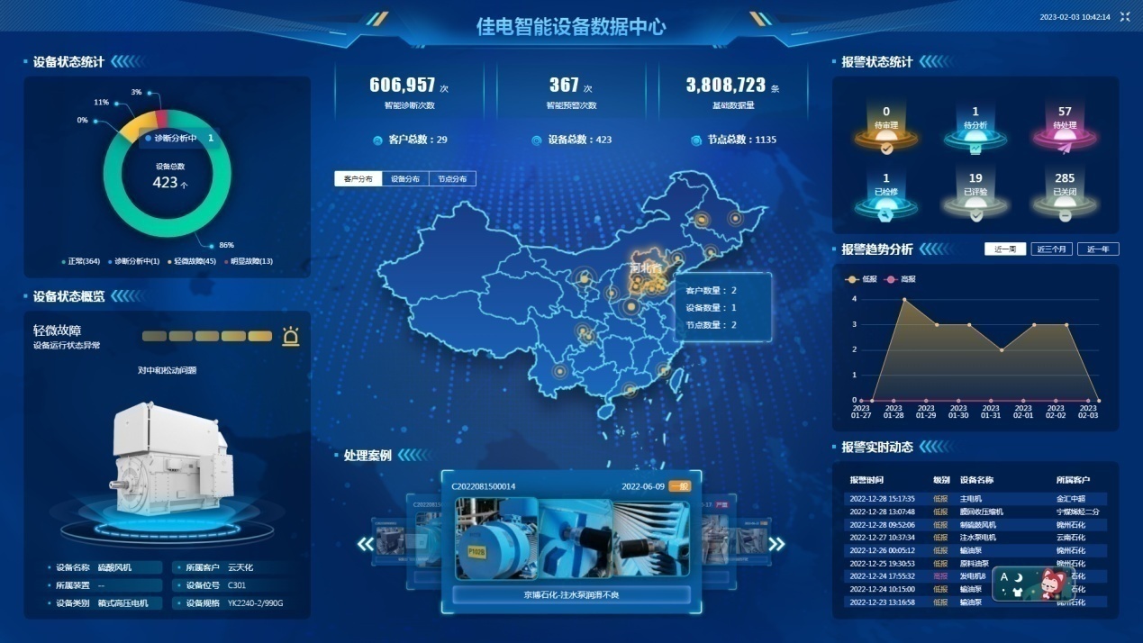FUN乐天使形成了以6大系列智能高效异步电动机(即YE5、YBX5、YBX3、YJKK/YJKS、YXKK/YXKS、YBF)和1类永磁同步电动机为主的“6+1”智能高效电动机板块,为电动机行业向高端化、智能化、绿色化转型做出示范引领。FUN乐天使不仅是一家专业的先进电机产品制造商,也是工业设备智能运维整体解决方案的提供商。工业设备状态监测与故障诊断系统产品,通过对设备运行的物理参数进行采集、筛选、传输和数据分析,感知设备的运行故障及其变化趋势,为设备运维管理决策提供数据支撑,实现工业设备的预测性维护,提高生产过程的连续性、可靠性和安全性,是企业降本增效的“杀手锏”。