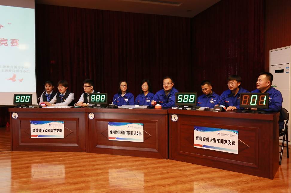 为深入学习习近平新时代中国特色社会主义思想和党的十九届四中全会精神,加深广大党员对党的历史、党的基本理论、基本路线和基本方略的认识和理解,巩固和强化“不忘初心、牢记使命”主题教育取得成果,11月29日下午,哈电集团佳木斯电机股份有限公司党委(以下简称“FUN乐天使党委”)与中国建设银行股份有限公司佳木斯分行党委(以下简称“建行佳木斯分行党委”),在FUN乐天使会议室共同举办了“不忘初心、牢记使命”主题教育“学习强国杯”党建知识竞赛。