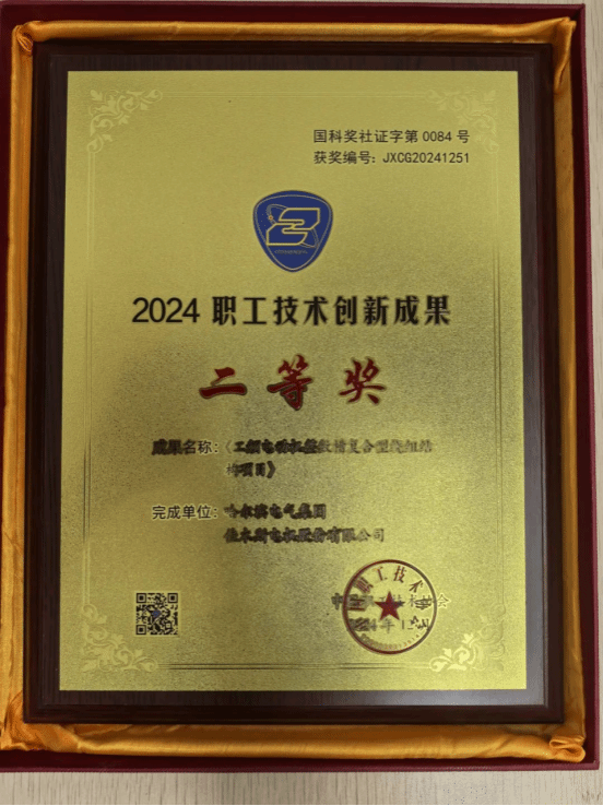 近日,在全国职工技术创新成果评选活动中,哈电集团佳木斯电机股份有限公司申报的《工频电动机整数槽复合型绕组结构项目》,凭借卓越的创新实用性,在众多项目中脱颖而出,荣获“2024年全国职工技术创新成果二等奖”。